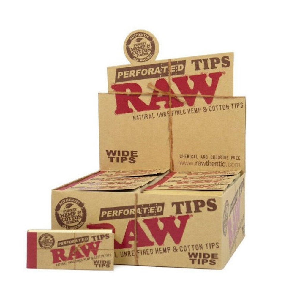 Las boquillas orgánicas de Raw Tips Wide están hechas de cáñamo y algodón, en tamaño wide (más largos), perfectos para los papeles KING SIZE.