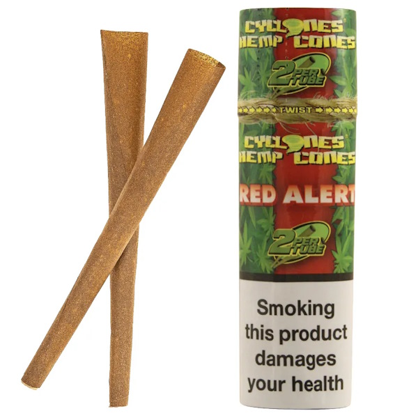 Los Cyclones Hemp Red Alert son conos pre-liados en cáñamo, libre al 100% de tabaco y nicotina.