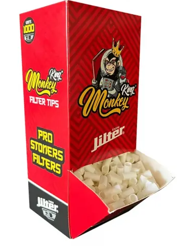Descubre esta colaboración ente Jilter y Monkey King, el dispensador de 1000 unidades, y disfruta de unos filtros con los que combinar tu boquilla de cartón ajustándola al filtro Jilter y así podrás retener eficazmente la cantidad de alquitrán y de nicotina que entra en cada calada.
