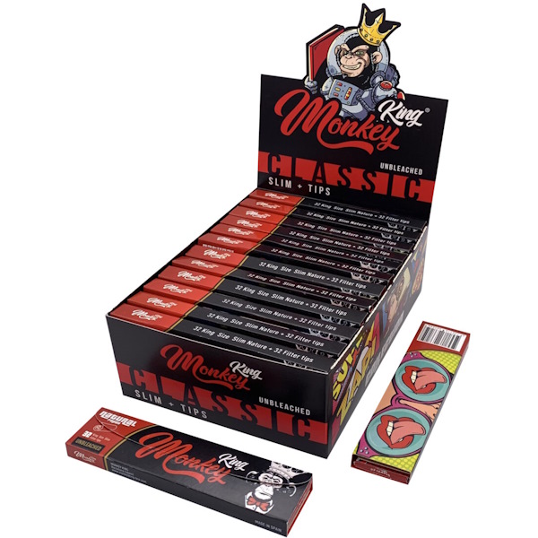 Pack compuesto por papel King Size Slim Unblached, papel sin blanquear de fibras naturales sin ningún tipo de colorante ni aditivo. De combustión lenta y con goma arábiga 100% natural. Filtros de cartón de 140 gr sin blanquear con pretroquelado para facilitar la forma del filtro y mejorar la filtración.