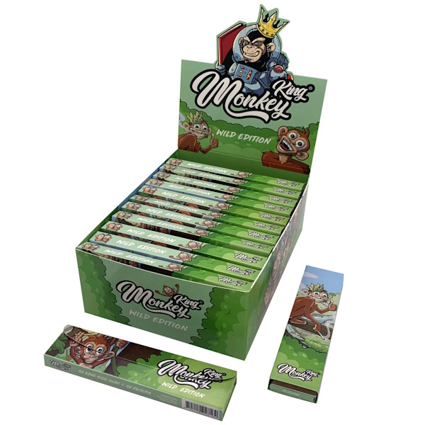 El Monkey King Pack Wild Edición incluye papel de liar y filtros de cartón, destaca por sus diseños únicos de monos locos en un ambiente salvaje, lo que lo convierte en una opción atractiva para los amantes del estilo y la originalidad.