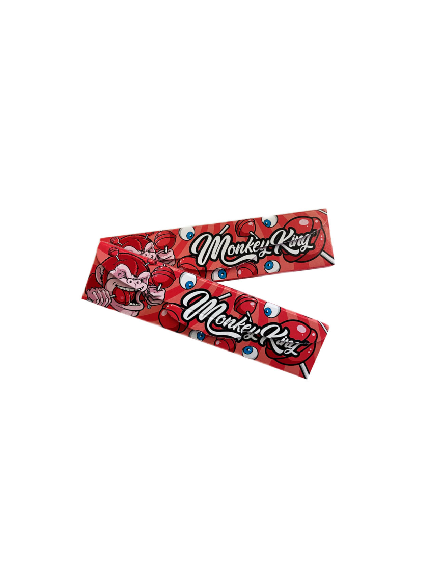 El Monkey Pack Smell Red Lollypop, esta compuesto por un librillo de 32 hojas de papel king size rojo, fabricado con fibras y tinte vegetal y con goma arábiga 100% natural, que proporcionan una combustión lenta y uniforme. Y con 32 filtros blancos con dibujos en rojo, de 51 mm X 25 mm, troquelados para facilitar su uso y mejorar su filtrado. Su envase va impregnado de un inconfundible olor a Lollypop que desbloqueara automáticamente todos tus recuerdos de infancia, ¿ por qué quién no adoraba de pequeños los chupachups ?